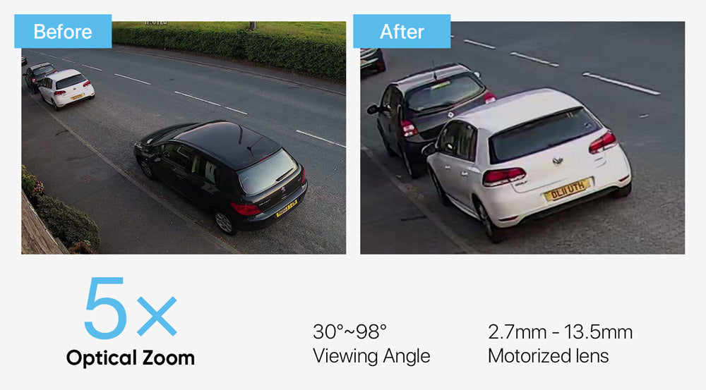 2.7-13.5mm optical zoom, to focus in on even the finest details, zoom in and out to get details of the objects without adjusting the installation of the camera.