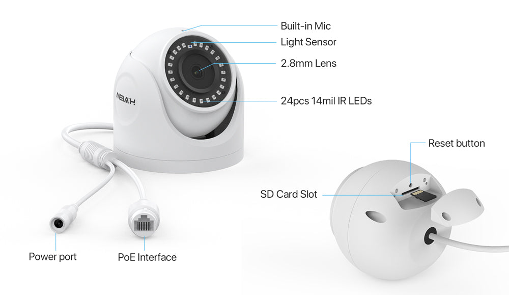 HV-E800DA PoE security IP camera uses a single cable to transmit both data and power. Simplified wiring means easier and clean installation. It is the best choice for DIY enthusiasts.