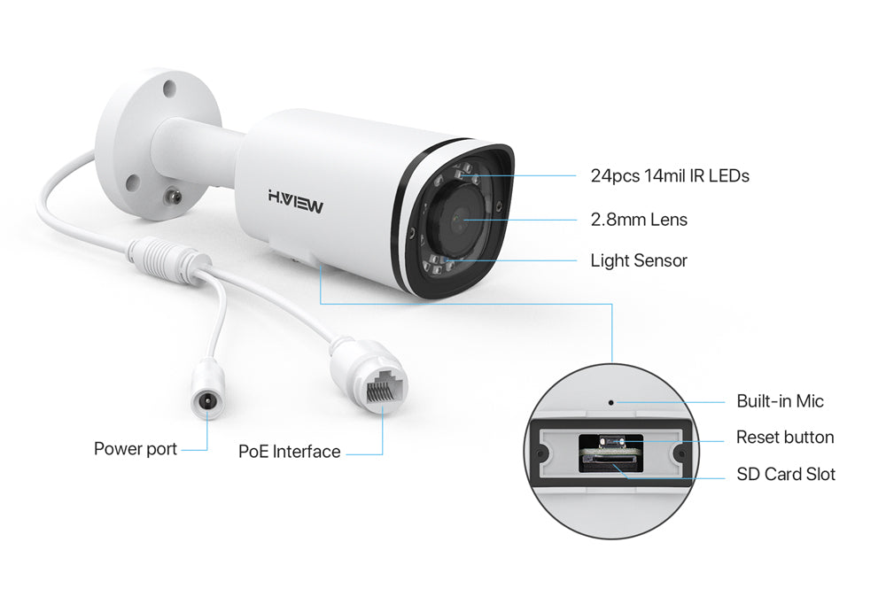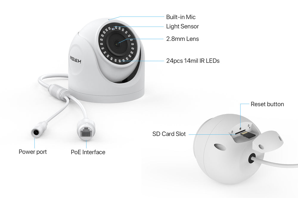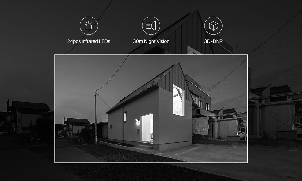 Mit den neuesten EXIR-Array-LEDs bringen die Kameras in der super Klarheit bis zu 100 Fuß / 30m Nachtsicht, da sie die dunklen Ecken und den Scheinwerferwirkung in anderen Kameras beseitigen. Egal, ob es Tag oder Nacht ist, Ihre Eigenschaften erhalten den 24/7-Schutz.