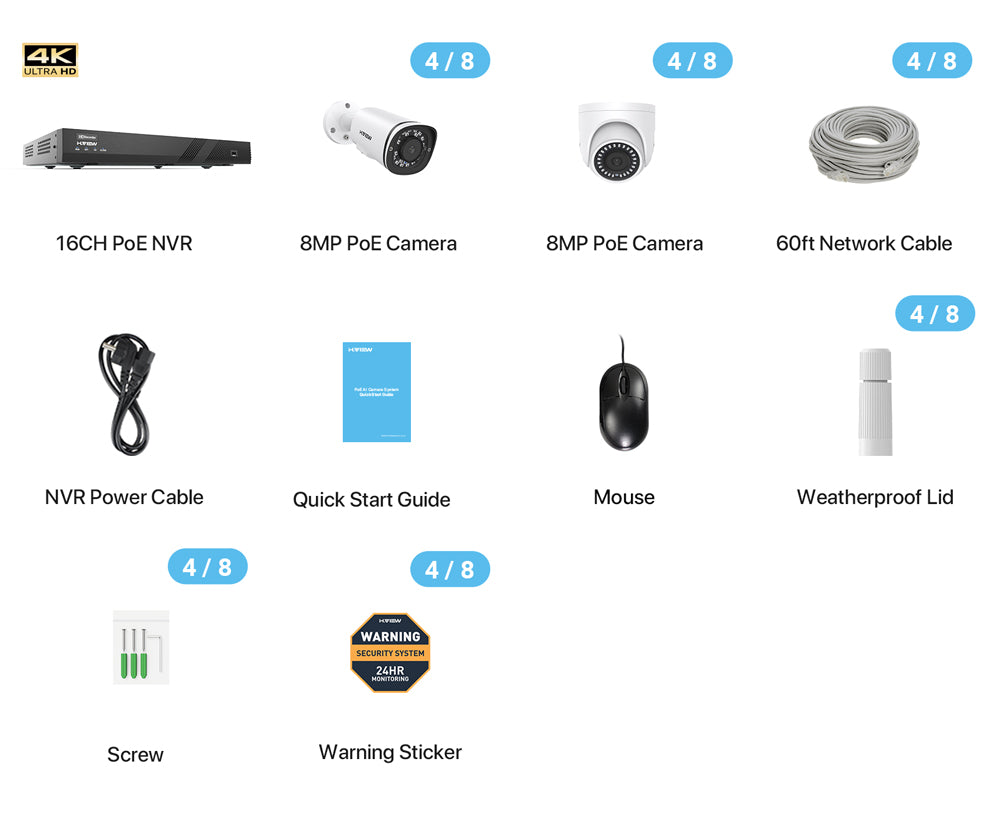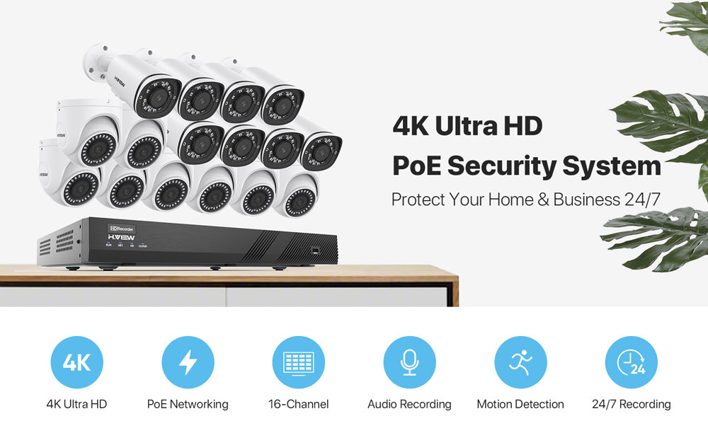 H.View 4K (8MP) Ultra HD 16 Kanäle PoE-Sicherheitssystem mit Audiokrott-Kuppel- und Kugelkameras