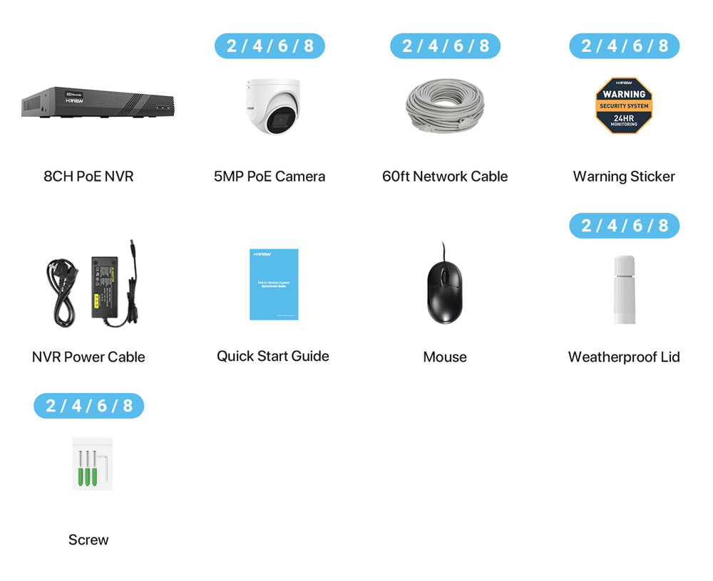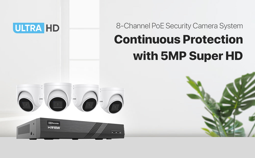 H.View NVR-Sicherheitssystem zeichnet Echtzeit-Videos auf allen Kanälen bei 5MP hoher Auflösung (2592 × 1944) auf, viel klarer als 1080p und 720p. Alle Kameras liefern unglaublich helle und scharfe Bilder in echter Farbe, mit denen Sie alle Objekte sehr deutlich sehen können.