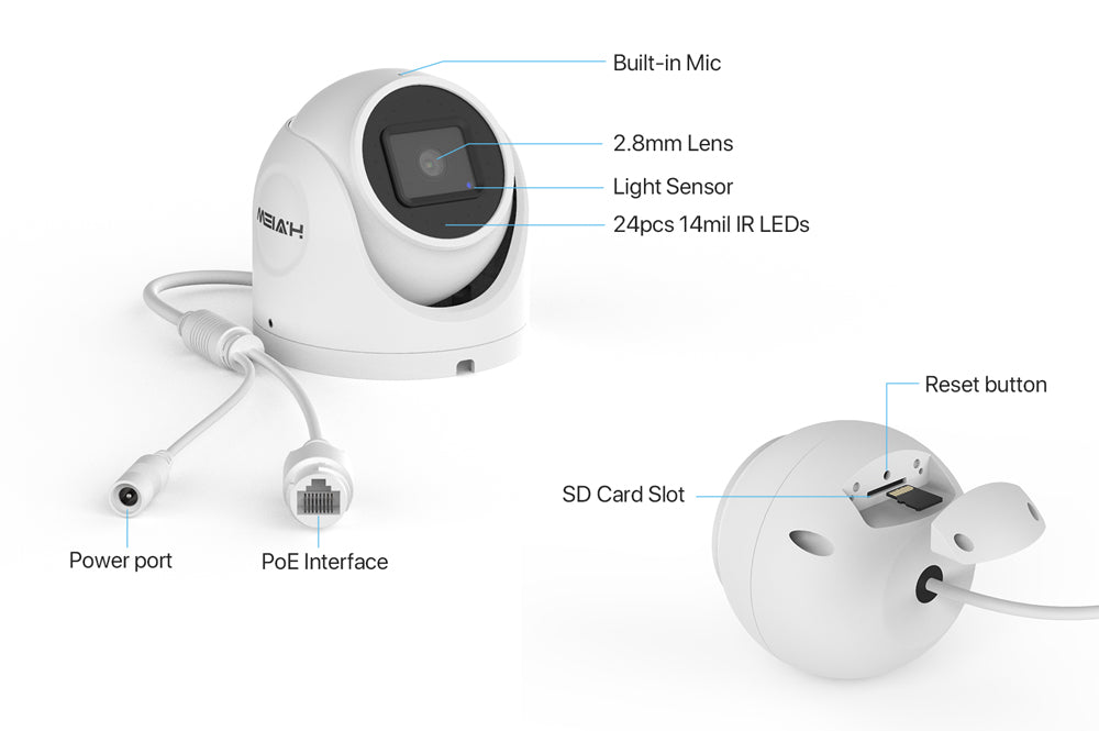 Die HV-500E6A-PoE-Sicherheits-IP-Kamera verwendet ein einzelnes Kabel, um Daten und Leistung zu übertragen. Vereinfachte Verdrahtung bedeutet eine leichtere und saubere Installation. Es ist die beste Wahl für DIY-Enthusiasten.