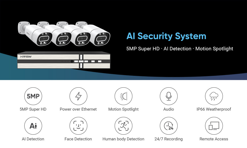 H. VIEW 8CH 5MP POE Security System, with Spotlight Camera AI Face Detection