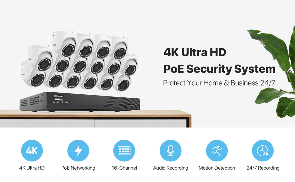 H.View 4K(8MP)Ultra HD 16チャンネルPOEセキュリティシステムのオーディオレコードドームカメラ