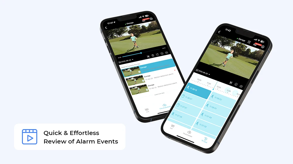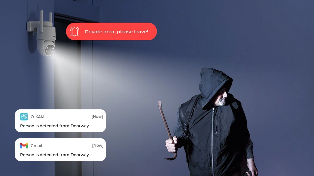 With a built-in mic and speaker, this camera enables real-time bidirectional voice communication via OKam Pro APP—ideal for guiding delivery personnel, checking on pets, or maintaining contact with household members when away.