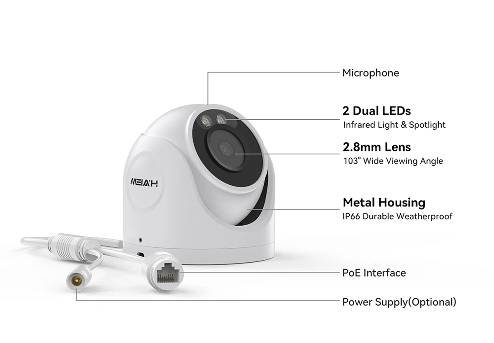 H.View 4K PoE IP Dome Camera with Audio, 2.8mm Lens, Wide Angle, Built-in SD Card Slot, Security Outdoor Camera, Cloud Storage, IP67 Weatherproof (2 Years Warranty)(HV-800S6)