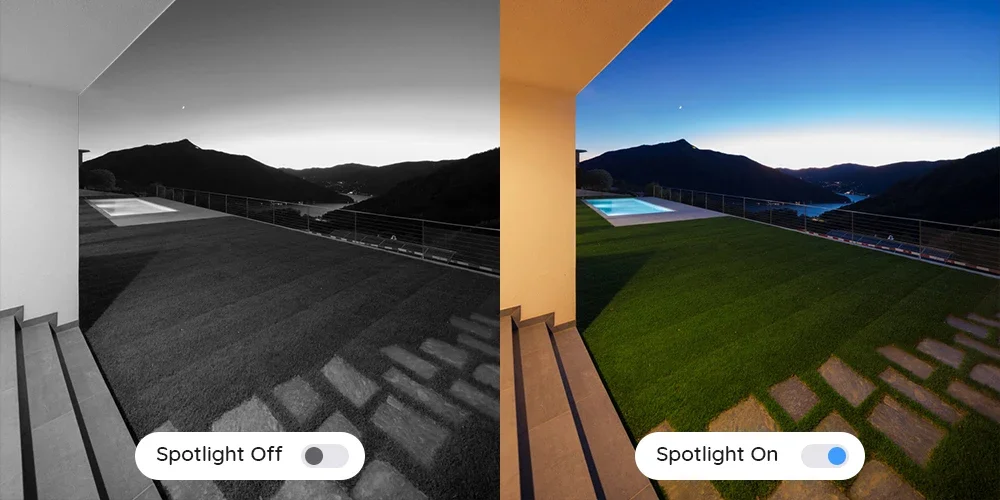 Once an intruder is detected, the camera's spotlight warning are triggered to alert potential criminals. And push alerts to your mobile device and email.Smart Dual Illumination